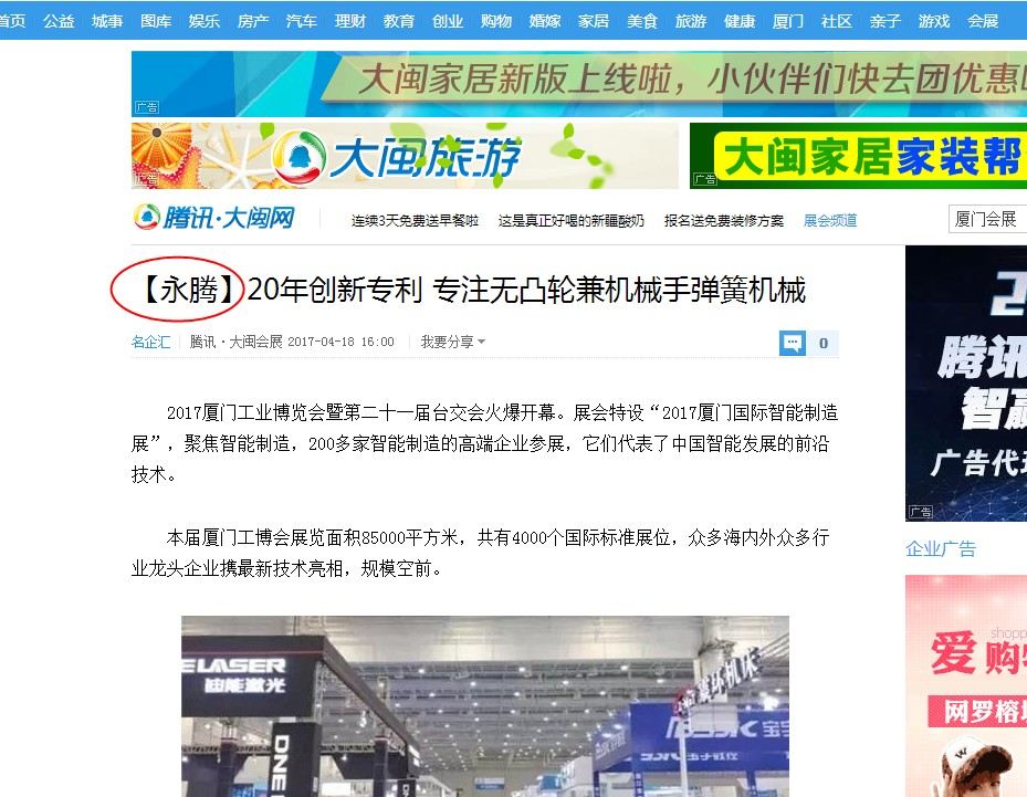 騰訊.大閩網(wǎng)報(bào)道永騰廈門會(huì)展