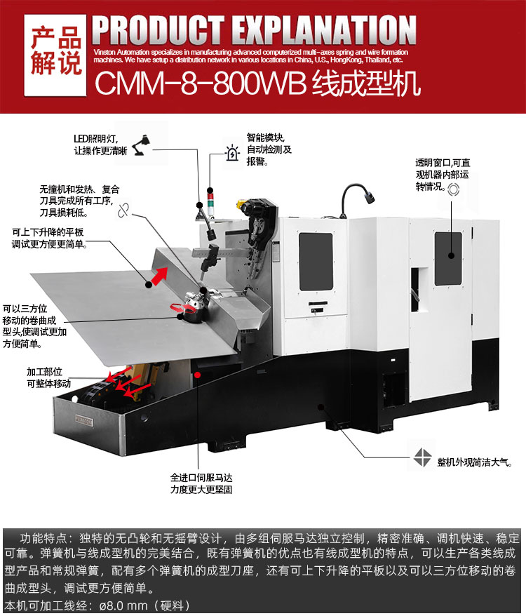 2、可加工8mm(硬料),目前成為國內(nèi)多家知名大型彈簧和線材成型企業(yè)必備的生產(chǎn)利器。